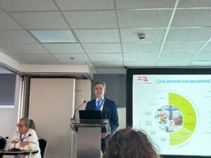 José Luis Santos Ascarza, psicólogo de la Fundación, presentó su ponencia «La creación del acceso vascular no debe ser un salto al vacío: estrategias utilizadas por Psicología». Santos Ascarza explicó que el miedo, la ansiedad y la falta de información pueden llevar al paciente a tomar decisiones condicionadas por la emoción. Desde la psicología, herramientas como tests, escalas y técnicas de intervención permiten conocer mejor al paciente y acompañarle en el proceso. Destacó además que el apoyo psicológico no se dirige solo al paciente, sino también al equipo sanitario que le atiende, y que la creación de una alianza terapéutica sólida es clave para evitar ese «salto al vacío».