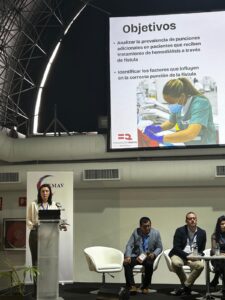 Belén Sanz, enfermera de ERCA de la unidad de diálisis en la Fundación Jiménez Díaz, presentó las ventajas de un modelo colaborativo entre cirugía vascular y enfermería nefrológica en la gestión de los accesos vasculares para hemodiálisis, poniendo en valor el trabajo en equipo como factor clave para mejorar los resultados