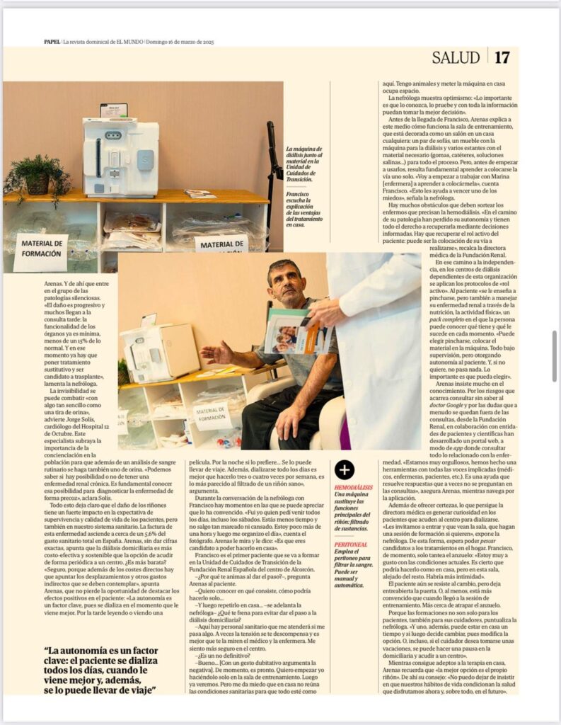 En la Fundación Renal Española alientan el rol activo del paciente, para ofrecer una mayor calidad de vida. Sin embargo, solo un 10% escoge tratarse en el hogar.