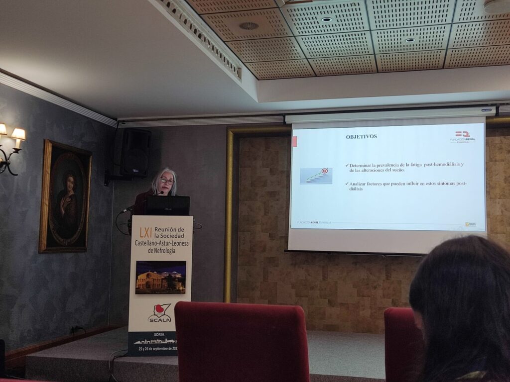 La Unidad de Investigación de la Fundación Renal Española ha participado en la LXI Reunión de la Sociedad Castellano-Astur-Leonesa de Nefrología (SCALN) celebrada los días 25 y 26 de septiembre en Soria, con cuatro comunicaciones orales y una mesa en la que nuestra psicóloga, Solmar Rodríguez ha destacado que el cribado sistemático con escalas breves, las intervenciones psicosociales, los programas de ejercicio intradiálisis, las técnicas de respiración y relajación, y el fortalecimiento del soporte social y familiar, son las estrategias que han demostrado mejores resultados a la hora de mejorar el bienestar y la calidad de vida de las personas con enfermedad renal.
