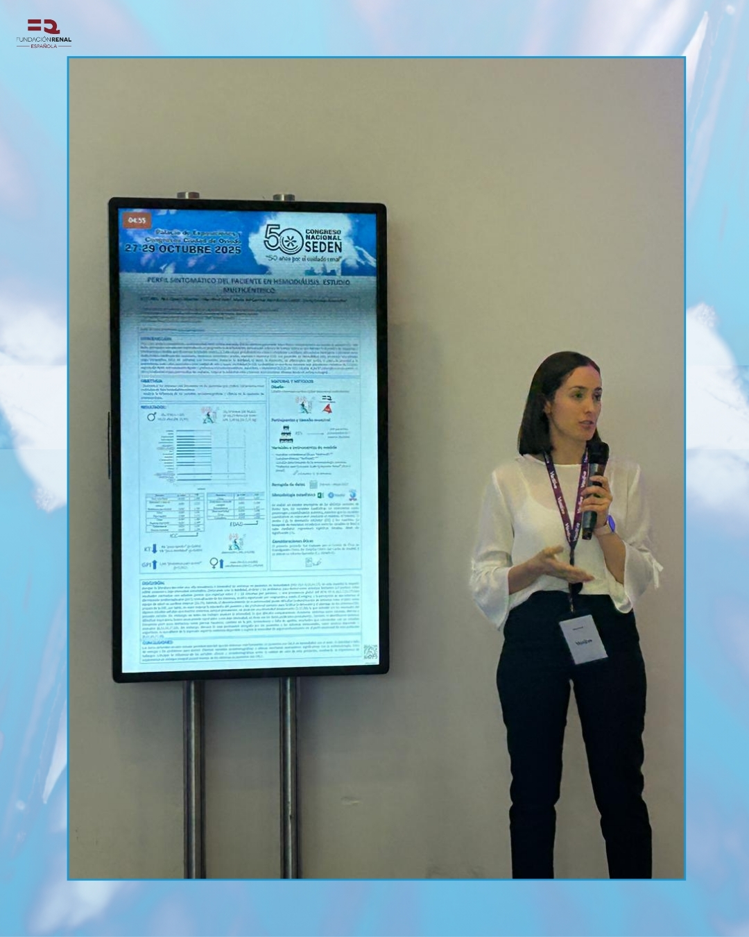 Beatriz González, de la Escuela de Enfermería Fundación Jiménez Díaz, Universidad Autónoma de Madrid, y del Instituto de Investigación Sanitaria-Hospital Fundación Jiménez Díaz, ha presentado un estudio multicéntrico con datos de la Fundación Renal Española que analiza los conocimientos, la familiaridad con guías KDIGO/KDOQI y la autopercepción de competencias nutricionales en enfermería y TCAE de unidades de hemodiálisis. Los resultados evidencian carencias transversales en formación, especialmente en micronutrientes y educación al paciente, y ponen de manifiesto la necesidad de programas estructurados e interprofesionales de capacitación en nutrición renal.
