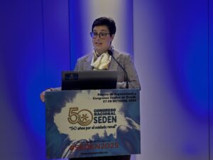 Finalmente, Marina Burgos, supervisora de Los Llanos III de Alcorcón, presentó el programa de Unidades de Cuidados de Transición, centrado en mejorar la calidad de vida mediante educación, acompañamiento y evaluación continua con herramientas como el método Match-D y las láminas COOP-WONCA.