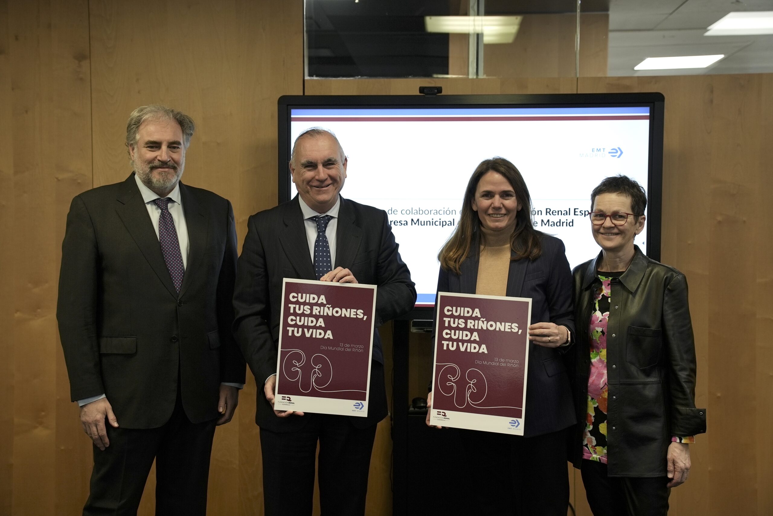 La primera iniciativa surgida a raíz de este convenio, ya se puede ver en las pantallas de los autobuses de la capital madrileña. Se trata de una campaña de sensibilización de la enfermedad renal que enseña a los viajeros a cuidar sus riñones y les anima a acercarse a hacerse pruebas gratuitas de detección precoz de la enfermedad renal el día 13 de marzo en la plaza de Cibeles con motivo del Día Mundial del Riñón.
