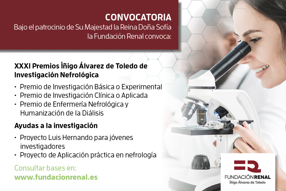 Bajo el patrocinio de su Majestad la Reina Doña Sofía, la Fundación Renal Íñigo Álvarez de Toledo convoca la XXXI edición de los Premios a la Investigación Nefrológica. Estos premios son el mayor reconocimiento que se otorga en nuestro país a la investigación relacionada con la patología del riñón.